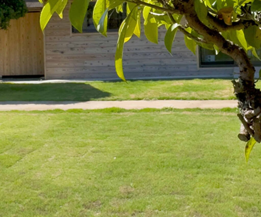 また災害時には防災拠点として、日頃から安心して皆さまが集える、あえて何もない芝生の小さな庭です。